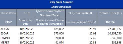 MEPET (ALIM)-(GERİ ALIM) : Şirketimizce 11.02.2026 tarihinde Borsa İstanbul'da pay başına ortalama