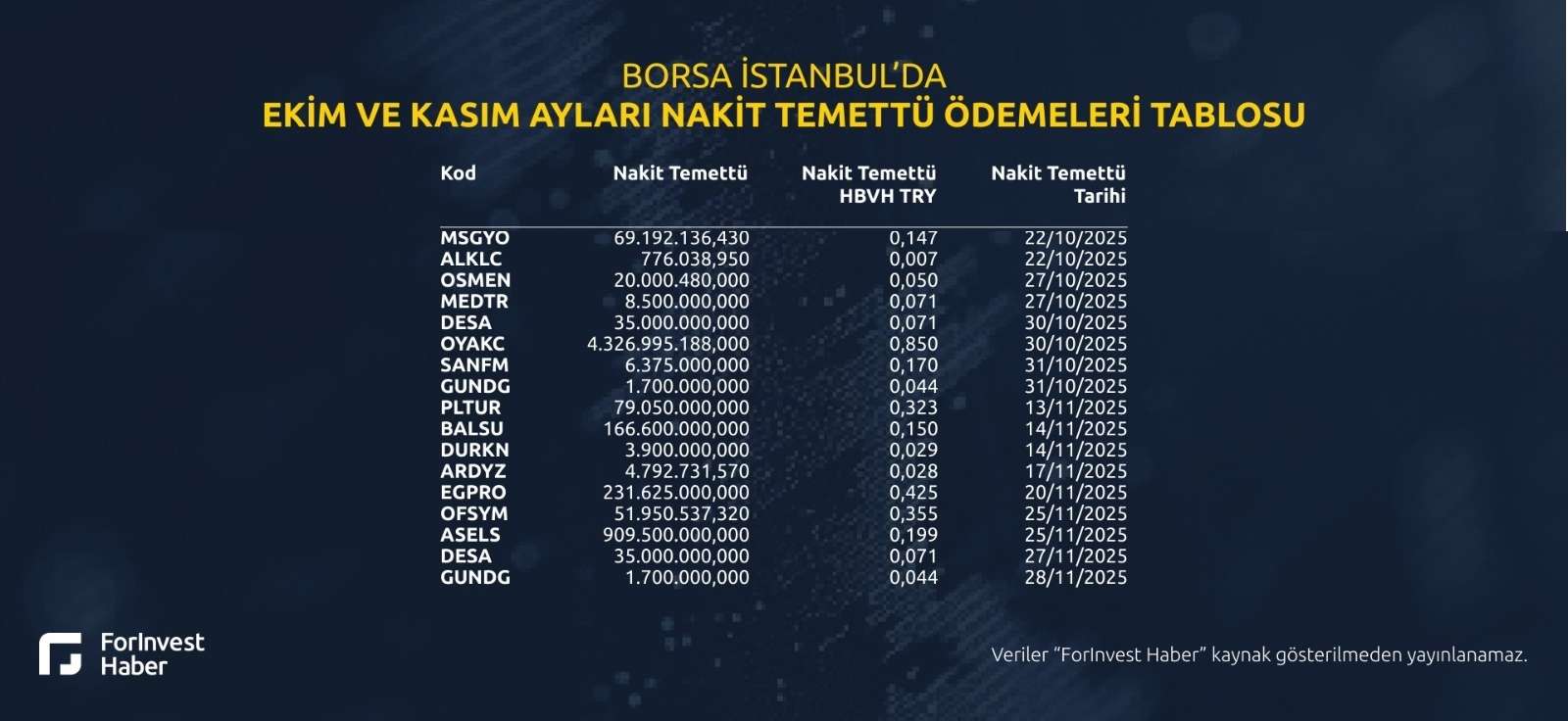 Borsa İstanbul’da Ekim ve Kasım Ayları Nakit Temettü Ödemeleri Tablosu