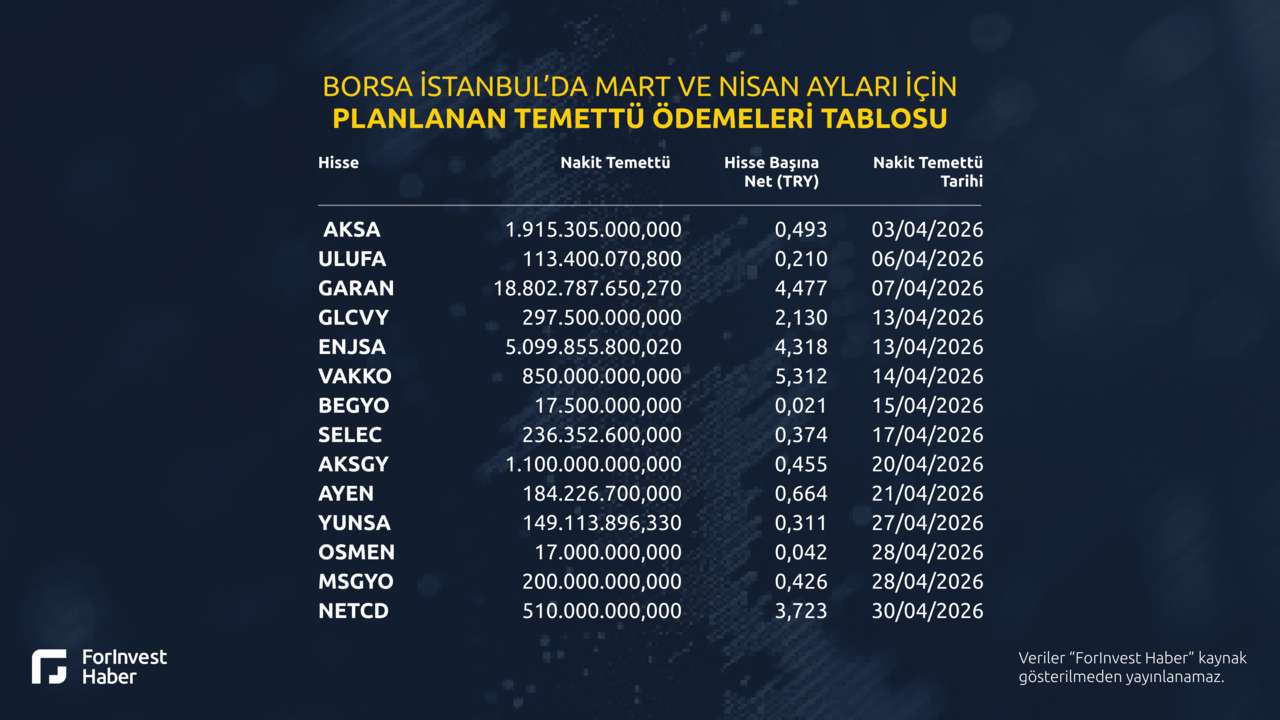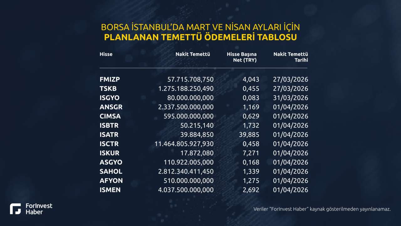 Borsa İstanbul’da Mart ve Nisan ayları için planlanan nakit temettü ödemeleri