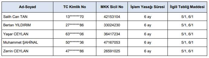 Volatilite Bazlı Tedbir Sistemi (VBTS) kapsamında CUSAN.E, DAPGM.E, EFORC.E ve SKYLP.E payları 13/08/2025 tarihli işlemlerden (seans başından) 12/09/2025 tarihli işlemlere (seans sonuna) kadar açığa satışa ve kredili işlemlere konu edilemeyecek.