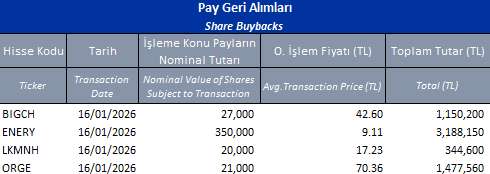 ENERY (ALIM)-(GERİ ALIM) : Şirketimizce 16.01.2026 tarihinde Borsa İstanbul'da pay başına ortalama
