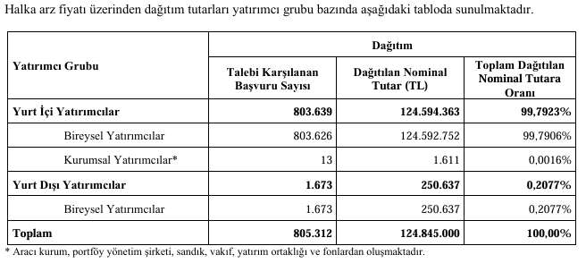 Halka arzda yatırımcı grubu bazında tahsis bulunmuyor.