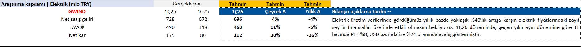 ANALİZ- 1. Çeyrek Kar Tahmini: GWIND (İş Yatırım)