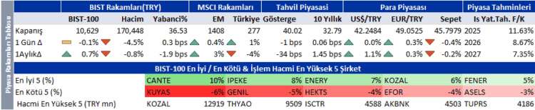 Dünya piyasalarının seyri Borsa İstanbul’da %1,0’e yakın kayıpla açılışa işaret ediyor. Sabah ilk işlemlerde Türk lirasında görülen kayıplar borsada satıcılı bir açılışı teyit ediyor. Son dönemde dünya ile korelasyonumuz önemli ölçüde zayıfladı. Bu sayede dünyanın sert satıcılı olduğu bir ortamda Borsa İstanbul daha az dayak yiyebilir. Endeks için destek ve direnç seviyeleri 10.550 ve 10.700.