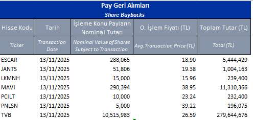 | Şirket, 13.11.2025 tarihinde Link Bilgisayar Sistemleri Yazılımı ve Donanımı Sanayi ve Ticaret A.Ş. paylarını 263-266,75 TL fiyat aralığından toplamda 250.000 TL’lik satışla elden çıkardığını duyurdu. Bu işlem sonrasında Şirket’in Link Bilgisayar’daki sermaye payı %12,98’e düşerken, oy hakları ise %34,63 oldu. |