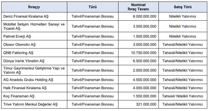 SPK haftalık bülteninde yer alan karara göre, onaylanan borçlanma aracı ve kira sertifikaları şu şekilde: