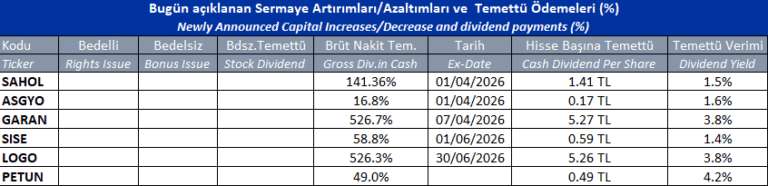Bugün gününde Ortadoğu haber akışı temel katalizör olmaya devam edecektir. Dün kapanışın ardından TTKOM, THYAO, SAHOL ve PGSUS gibi endeks ağırlığı yüksek şirketlerin açıkladığı finansal sonuçların hisse bazlı hareketlilik yaratmasını bekliyoruz; ancak jeopolitik cepheden gelebilecek olası güçlü haber akışlarının bu bilanço fiyatlamalarını baskılayabileceği unutulmamalıdır. Ayrıca, yarın piyasa kapanışı sonrasında açıklanması beklenen Anadolu Efes (AEFES) ve Turkcell (TCELL) bilançoları da piyasanın radarında olacak ve yakından takip edilecektir.