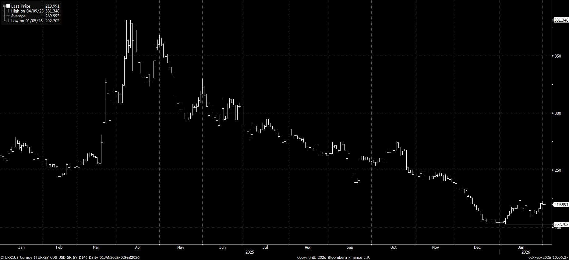 2026 yılının başlamasıyla CDS’in düşük seyri devam ediyor. An itibariyle 219,99 seviyelerinde seyretmesi, risk algısında belirgin bir normalleşmeye işaret ediyor. Bu görünüm, Türkiye varlıklarına yönelik fiyatlamanın daha dengeli bir çerçeveye oturduğunu ve ülke riskinin 2025 yılı ilk yarısına kıyasla daha sınırlı bir primle fiyatlandığını gösteriyor. CDS’in 200 baz puan bandına yaklaşması, dış finansman koşullarının görece elverişli hale geldiğine, borçlanma maliyetleri üzerindeki baskının azaldığına ve uluslararası yatırımcı nezdinde temkinli ancak daha yapıcı bir algının oluştuğuna işaret ediyor. Bu çerçevede CDS tarafındaki düşük seviyelerin korunması, sermaye akımları açısından destekleyici bir arka plan sunuyor. CDS primlerindeki mevcut seviye, Türkiye’nin risk profilinde yıl geneline yayılan dalgalanmaların ardından daha istikrarlı bir fiyatlama rejimine geçildiğini düşündürürken, bu görünümün kalıcılığı küresel risk iştahı ve finansal koşullardaki seyirle yakından ilişkili olmaya devam edecek.