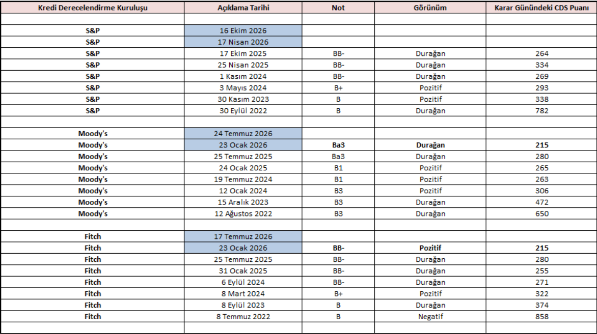 → Fitch - Moody’s Türkiye Kredi Notu Değerlendirmesi