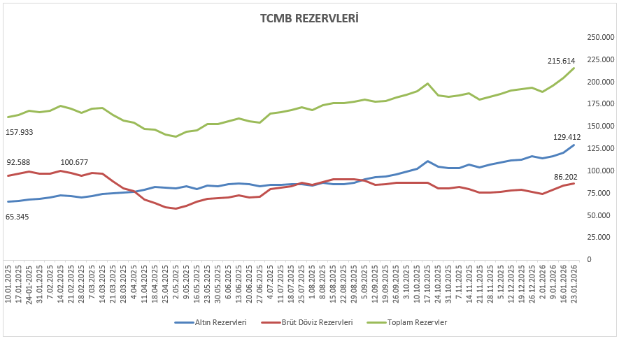 Yılın başından 30 Ocak haftasına kadar olan dönemde TCMB rezervlerinde belirgin bir artış dikkat çekiyor. Altın rezervlerinde güçlü bir artış görülürken, brüt döviz rezervlerinde daha sınırlı bir yükseliş söz konusu. Genel çerçevede rezervlerdeki bu tablo, enflasyonla mücadele sürecini destekleyen makro dengelerin güçlendiğine işaret ediyor. Ancak rezerv kompozisyonundaki değişimin kalıcı hale gelmesi ve döviz rezervlerinde daha dengeli bir seyir oluşması, önümüzdeki dönemde makro görünüm açısından belirleyici olmaya devam edecek.