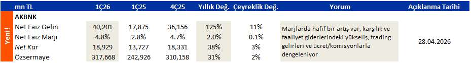 ANALİZ- 1. Çeyrek Kar Tahmini: AKBNK (İş Yatırım)