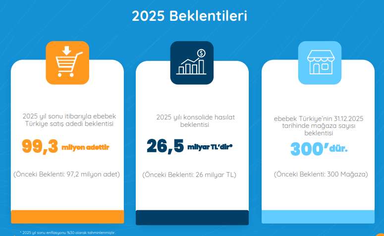 Ebebek 2025 konsolide hasılat beklentisini 26 milyar TL'den 26,5 milyar TL'ye revize etti.