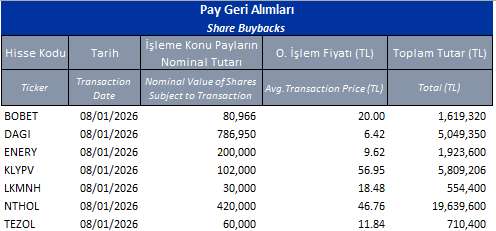 ENERY (ALIM)-(GERİ ALIM) : Şirketimizce 06.01.2026 tarihinde Borsa İstanbul'da pay başına ortalama
