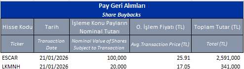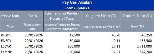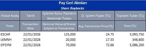 Pay geri alım programları kapsamında ilgili tarihte geri alım yapan şirketlerin listesini aşağıdaki tabloda bulabilirsiniz.