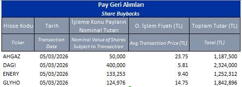 DAGI (ALIM)-(GERİ ALIM) : Şirketimizce 09.03.2026 tarihinde Borsa İstanbul'da pay başına ortalama