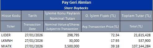 LIDER (ALIM)-(GERİ ALIM) : Şirketimizce 27.01.2026 tarihinde Borsa İstanbul'da pay başına ortalama
