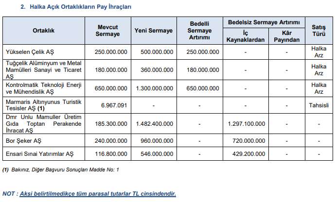 Marmaris Altınyunus Turistik Tesisler AŞ’nin (Şirket) 2.000.000.000 TL tutarındaki kayıtlı sermaye tavanı içerisinde 6.967.091 TL olan çıkarılmış sermayesinin, mevcut ortakların yeni pay alma haklarının tamamen kısıtlanması suretiyle, toplam satış hasılatı 1.600.000.000 TL olacak şekilde, Borsa İstanbul AŞ’nin Toptan Alış Satış İşlemlerine İlişkin Prosedürü (Borsa Prosedürü) çerçevesinde belirlenecek pay satış fiyatı esas alınmak suretiyle 1.600.000.000 TL satış bedeli karşılığı nominal tutarda artırılması nedeniyle ihraç edilecek ve tahsisli olarak Koç Holding AŞ’ye satılacak nama yazılı paylara ilişkin ihraç belgesinin Kurulumuzca onaylanması talebine ilişkin olarak;