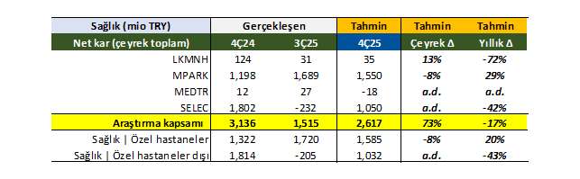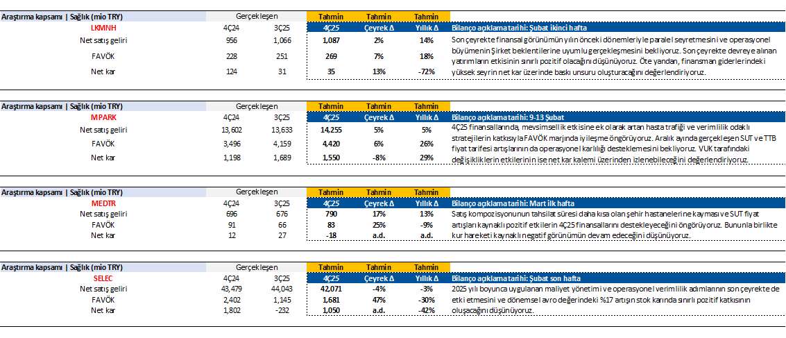 HİSSE DEĞERLENDİRMESİ- Deniz Yatırım, sağlık sektöründe takip ettiği şirketler için 2025 4Ç mali sonuç tahminlerini paylaştı