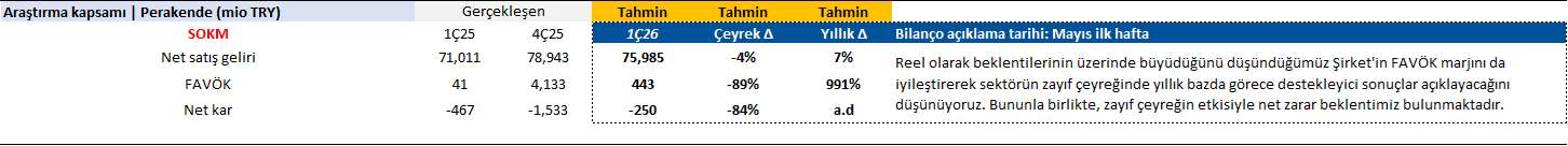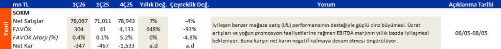 ANALİZ- Hisse Notu: SOKM - 1Ç26 Beklentimiz (Deniz Yatırım)
