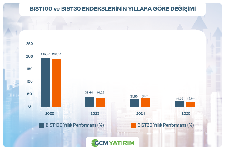 Borsa İstanbul, 2022’deki güçlü yükselişin ardından son üç yılda daha seçici ve dalgalı bir fiyatlama sürecine girdi. Nominal bazda BIST100 endeksi 2023’te yaklaşık %36, 2024’te %32 yükselirken, 2025 yılında %15 civarında artışla pozitif bölgede kalmasına rağmen önceki yıllara kıyasla daha sınırlı bir performans sergiledi. Bu görünümde yüksek faiz ortamı ve finansman maliyetlerinin şirket bilançoları üzerindeki baskısı etkili olurken, 2026’ya yönelik beklentilerde enflasyondaki kademeli gerilemenin piyasa algısını destekleyebileceği ve yılın ilerleyen dönemlerinde daha yapıcı bir zemin oluşturabileceği öne çıkıyor.