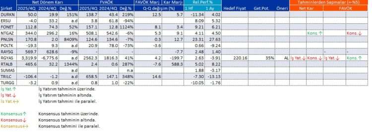 ANALİZ-Açıklanan Kar Rakamları (İş Yatırım)